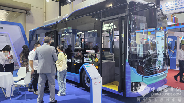 多年来,金龙不仅深入攻关自主创新技术,形成自己的自动驾驶产品矩阵,同时在国家战略大背景下,快速响应市场需求,助力发展智慧交通。在中国——中亚国家合作展区的金龙五代公交就是金龙根据国内公交市场小型化、适老化趋势推出的针对性系列产品之一。金龙以人为本,针对实际需求,在细节处发力,在车辆上采用一级踏步设计,踏步高度仅340mm,方便老年人上下车,实现无障碍通行;车辆电池、电机、电控等零部件防护等级也达到了行业最高的IP69,安全性进一步提升,广受好评。