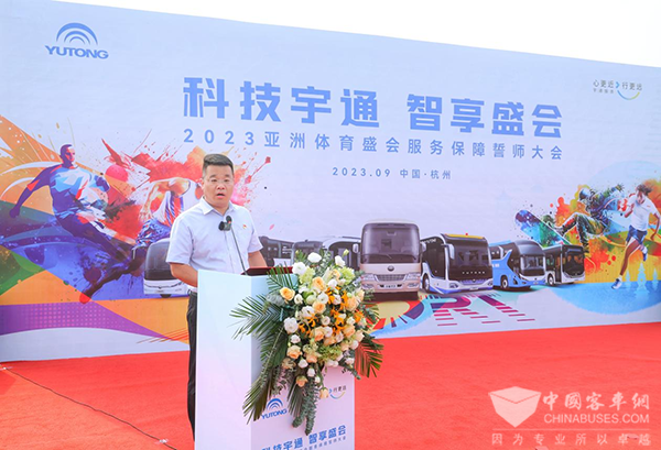 宇通客车闽浙服务分公司经理周海鹏在誓师大会现场表示:“为了圆满完成圆满完成2023亚洲体育盛会的服务保障工作,我们从6月就开始进行服务保障方案的策划,并持续执行和完善,竭尽所能为乘客提供更舒适、更高效、更环保、更安全的出行体验,铸就客户最佳服务体验,谱写国际盛会服务保障新画卷。”