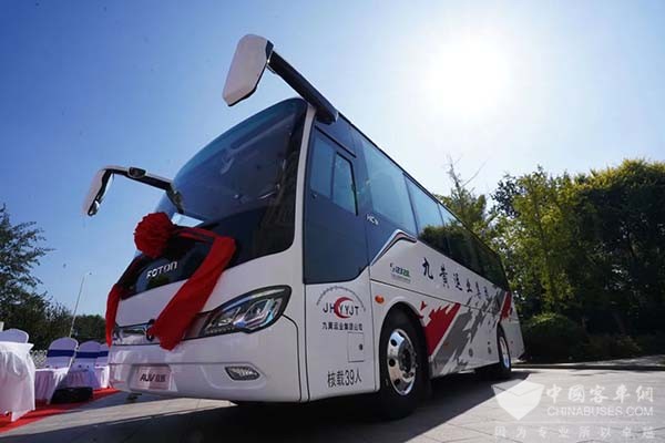 值得一提的是,此次交付的旅游客车基于福田欧辉成熟的城间客车产品平台,采用三重降耗设计,整体节油率超过10%,4D车身防护技术,全面提升整车安全,运用iTink智能车载管理系统,全方位满足九黄运业在不同场景下的运营需求。