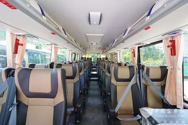 BJ6906城间客车集舒适性、时尚性于一体,造型简约大方,搭配高端商务座椅以及豪华内饰,使得乘客在乘坐过程中即可感受“未至景点,已经入景”的旅行体验。