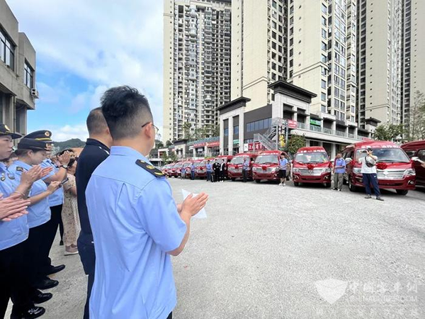 仪式现场,深红色的微型面包车一字排开,特别醒目。车前挡风玻璃上方喷绘着“二戈寨—油榨街”,车辆侧面写着“黔爽微巴”,并标明“核载12人”。当天现场来了不少辖区居民,看到专线开通,他们拍手称快,纷纷说到这是件大好事,居民苏春芬说:“以前的‘黑车’不安全,车速快还经常超载,现在出行坐专线车好多了,对我们的安全有保障。”