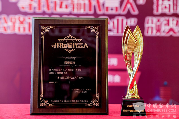 2023年9月19日,第五届“寻找运输代言人”揭晓仪式暨“公路运输优秀企业”颁奖典礼将在北京隆重举办。依维柯全新得意用户刘尊磊在此次活动评选中,荣获“多功能运输代言人”称号。
