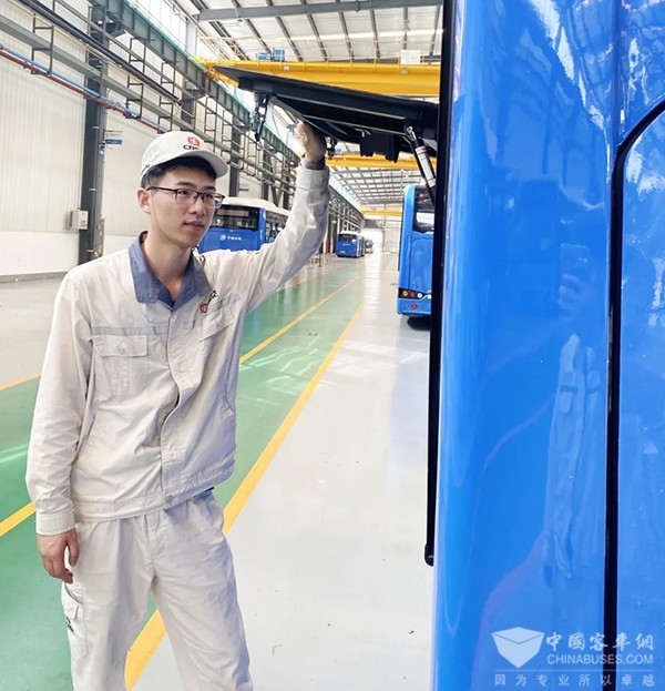 于是,在整合了自己的想法和产品的实际运行等信息后,叶乐伟迅速着手改进方案,最终开发了一款新型电池罩。这款电池罩相比此前的版本,不仅大大提升了外观效果,而且在保证强度的基础上,减轻了重量,方便了检修。经过评审和测试等环节后,这批电池罩已经应用在了公司生产的第四代8.5米车辆上,其优秀的性能备受客户好评。