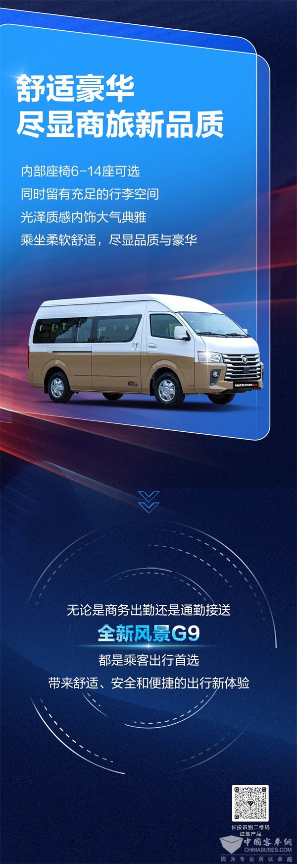 全新风景G9全新打造全新的客运体验,开启豪华、舒适、安全的客运新时代。