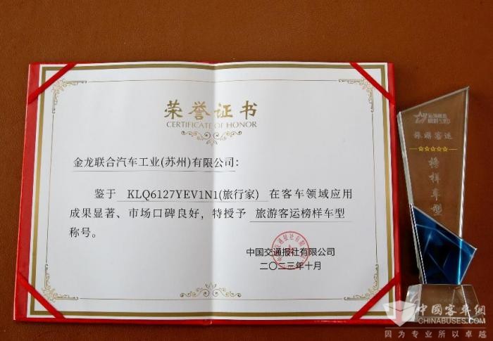 凸显智能化与高端商旅优势 苏州金龙斩获两项“榜样车型”大奖