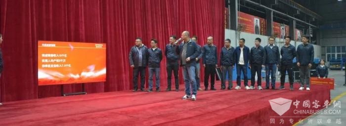 开沃集团副总裁/轻型商用车事业部总经理江民与团队宣誓,并授牌、奖励