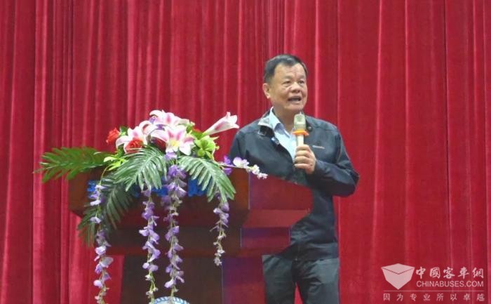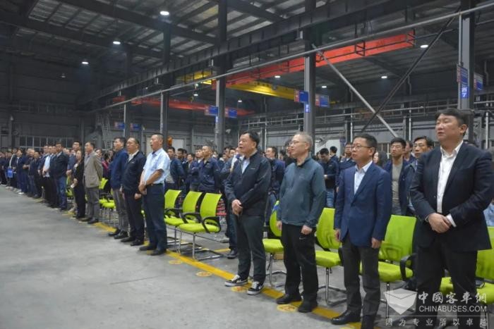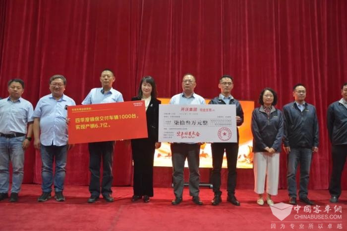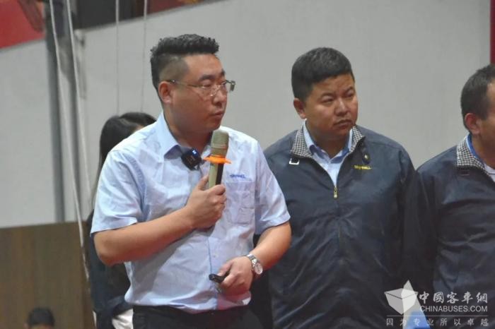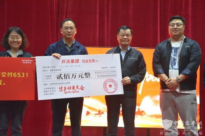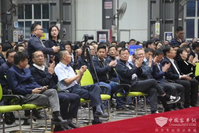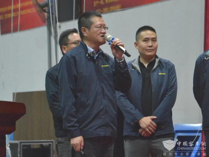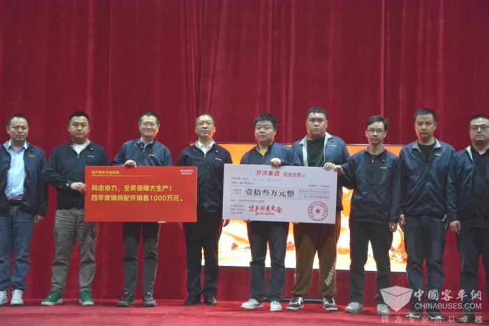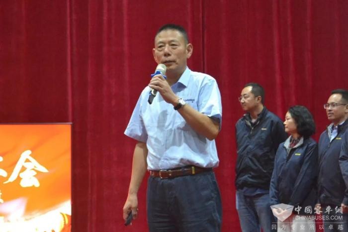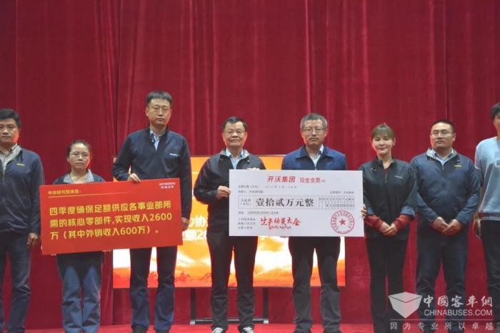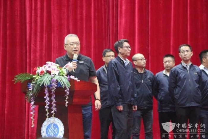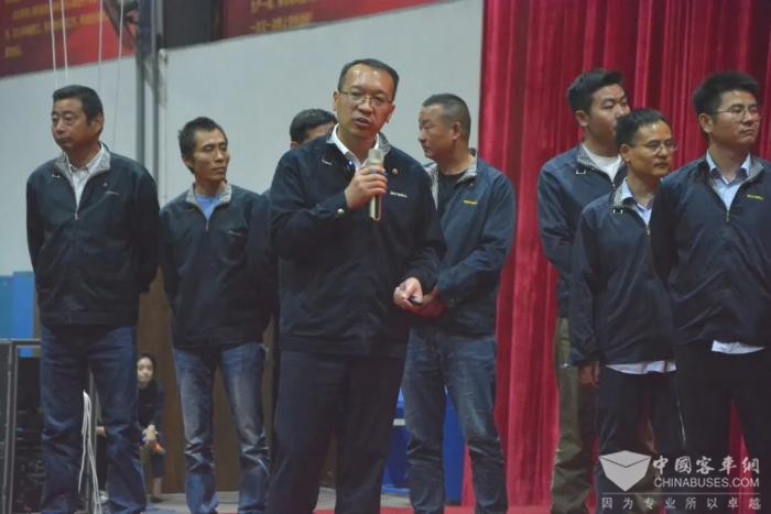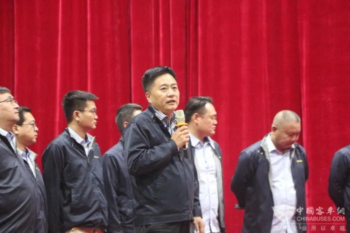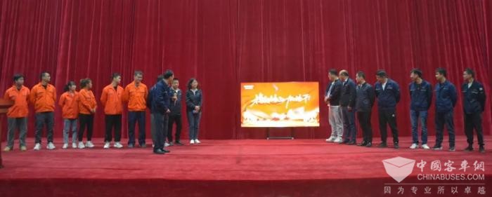 集团副总裁兼乘用车事业部总经理吴龙八、集团副总裁钱瑞瑜,集团副总裁兼大客事业部总经理李江、集团副总裁兼轻商事业部总经理江民、零部件事业部总经理孙健、集团常务副总裁董钊志,客户服务中心总监毛文峰分别代表各业务板块发布了生产动员令,亮明指标,标明奖励,黄宏生董事长等领导分别为其授牌及颁发奖励。