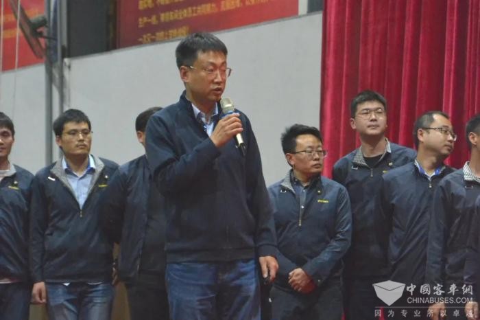 大客事业部副总经理陈晓东代表制造系统发言,面对不足三个月的时间,订单生产压力巨大,但制造系统会保持敢打硬仗、恶仗的传统,勇于向一切不可能宣战:大战60天,决战上甘岭,奋战四季度,保质保量使命必达。