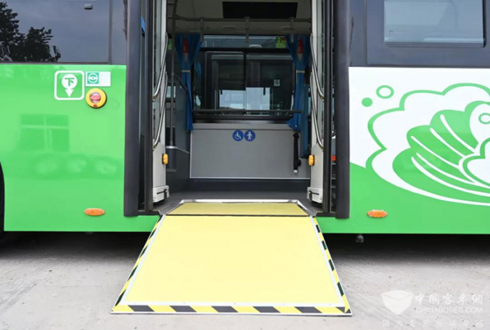 安凯低地板公交取消了多级车门台阶,实现了与适老化改造后的站台完美衔接,方便了老幼乘客一步登乘。而低入口公交更是贴心,后门配置了无障碍导板,能直接搭在公交站台的石阶上,方便轮椅和婴儿车等进出公交车,成为老百姓心仪的“巴适公交”。