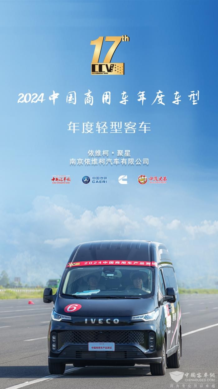 2023年12月1日,由《中国汽车报》社有限公司主办的2024中国商用车年度车型盛典在北京隆重举行。经过严苛的线下测评、权威专家评议等综合考量和选拔,拥有卓越表现的依维柯聚星脱颖而出,摘得“年度车型”称号,荣膺“年度轻型客车”荣誉!