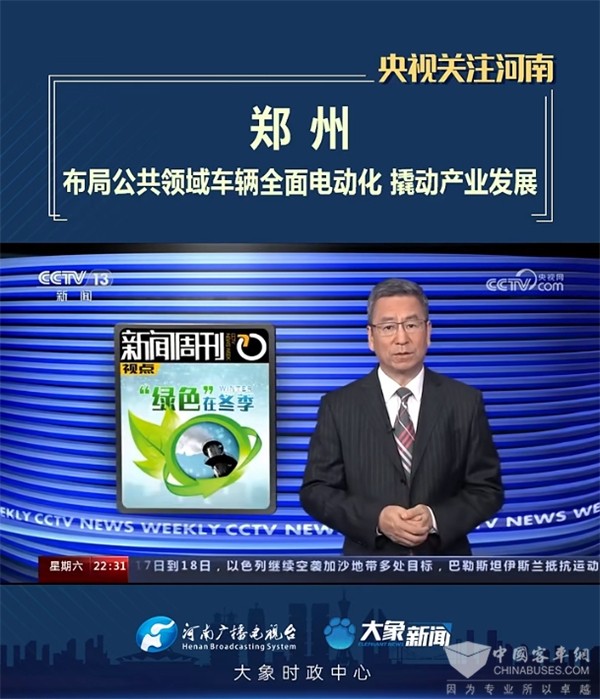 近日,央视新闻频道《新闻周刊》再度聚焦郑州,对郑州布局公共领域车辆全面电动化进行了报道。