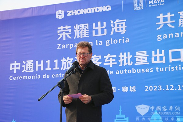 中通客车总经理王兴富在致辞中表示:在“一带一路”战略倡议下,中墨两国在经贸领域密切合作。中通客车是双方合作的重要参与者,越来越多的中通客车产品走向墨西哥。未来,中通客车也将通过持续的创新与提升,以更加绿色、智慧、高效的产品解决方案,助力全球客运交通事业升级发展。