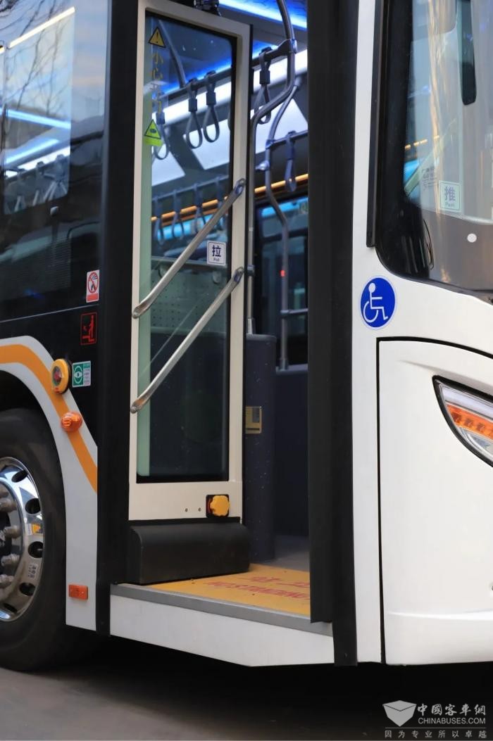 此次购置的100台格力钛新能源公交车全部加装扶手加热装置,车内全面开启空调暖风,配备空气净化消杀设备,USB充电口,无障碍踏步,为乘客提供更舒适的乘车环境;为配合“响应式停靠”运营模式,缩短市民出行时间,新车在门铃设置上也有了新变化,全车共设有11处门铃,分别在中门前后、乘客座椅旁增设8处门铃按钮,无障碍区域增添1处特殊提示音门铃按钮,全方位方便乘客按门铃下车,提高公交服务质量和乘客出行效率。