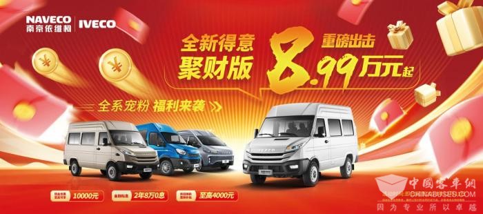 当下如果你刚好有购车需求,南京依维柯全系宠粉,多重福利仍在继续。不仅有全新得意聚财版重磅出击,售价仅需8.99万起,更有针对全系车型推出了诚意满满的2年8万0息,“依旧换新”至高4000元等购车福利政策,时间不多啦,赶紧来选购哦!