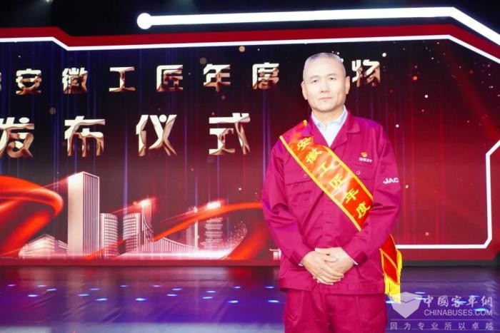 2023年12月26日,由中共安徽省委宣传部、安徽省总工会、安徽广播电视台联合举办的2023安徽工匠年度人物发布仪式在合肥举行。凭借三十年如一日的热爱与坚守,安徽安凯汽车股份有限公司整车试验首席高级技师丁延松获评2023安徽工匠年度人物。