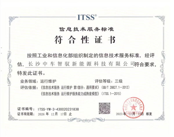 经严格评估和审核,近日,中车电动旗下的长沙中车智驭新能源科技有限公司(下称:智驭公司)成功获得两项“国家级”IT资质:ITSS信息技术服务标准认证、双软资质。标志着智驭公司在信息技术服务领域的专业技术和服务水平得到“国家级”认可。
