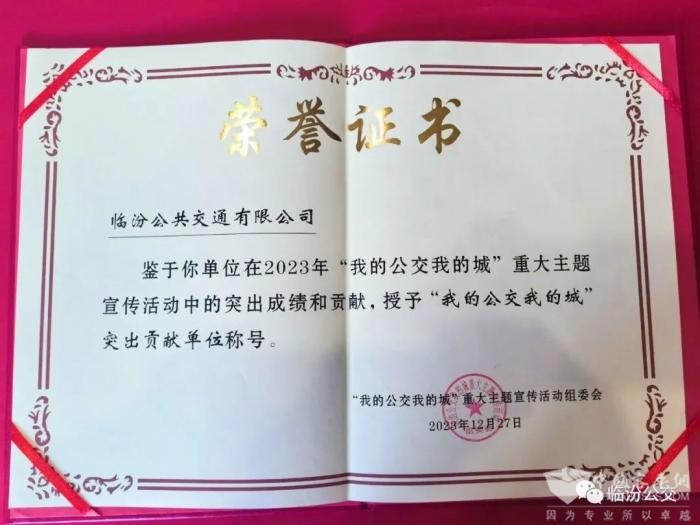 在本次评选中,临汾公共交通有限公司(简称“临汾公交”)获评突出贡献单位。
