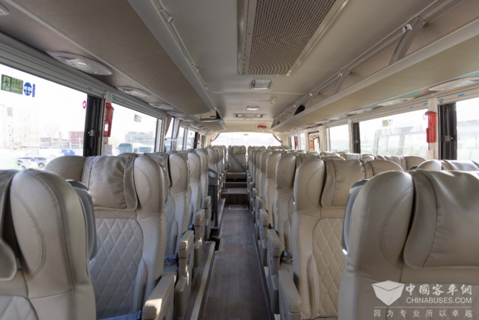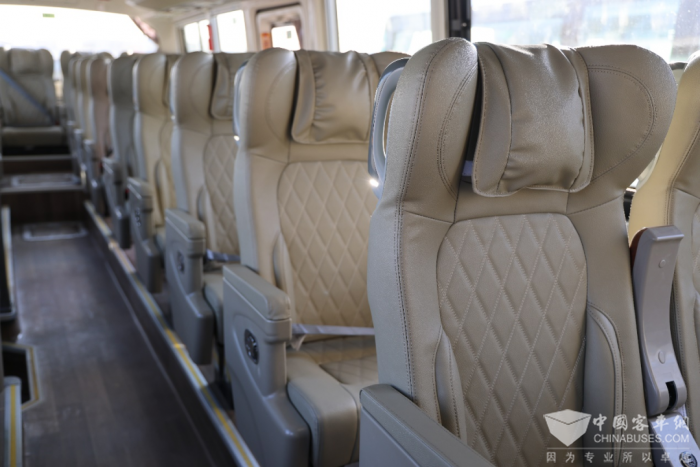 BJ6122聚焦化解旅游客运过程中长途驾乘之疲累,在乘客区采用定制化“陆地头等舱”豪华座椅设计,双密度海绵坐垫,多种复合填充材料靠背及头枕,充分兼顾支撑性和舒适性。更有书报袋、安全扶手、衣帽勾和脚踏等,让乘客在整个旅程中更加轻松愉快。