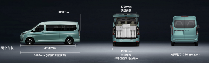 对于部分个体老板,传统大VAN存在空间过剩、灵活性不足的问题。图雅诺大V完美契合用户的诉求,在空间方面拥有5490mm的极限C照蓝牌车长和4990mm的短轴版本,还有1990/2195/2480mm三种顶高,满足99%社区地库、商超地库限高,同时在宽度方面追求极致的利用率,1750mm内宽下,外宽控制在1980mm,内保空间,外顾灵动;高顶车型行业最大内高,满足旅居、救护等专业改装,外高不超2.5米,满足绝大部分路桥限高要求。![]()