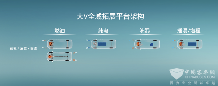 回顾中国轻客发展史,前四代轻客均是模仿国外技术、引进国内合作,产品主要用途聚焦在货运。而福田图雅诺自主创新研发,凭借舒适、经济、绿色、平衡等产品特征,广泛满足客运及多元化的改装需求,引领全新一代民族轻客走出国门、参与国际竞争。这就是福田汽车以最严苛的欧盟法规标准,打造的第一个面向全球、高延展性的第五代轻客平台:图雅诺大V。可同步拓展燃油、纯电、油混、插混、增程多技术路线,前驱、后驱、四驱多种驱动方式,提供厢货、多功能车、客车三款基础车型,可灵活拓展房车、工具服务车、医疗救护车、公检法用车等特种改装品种。![]()