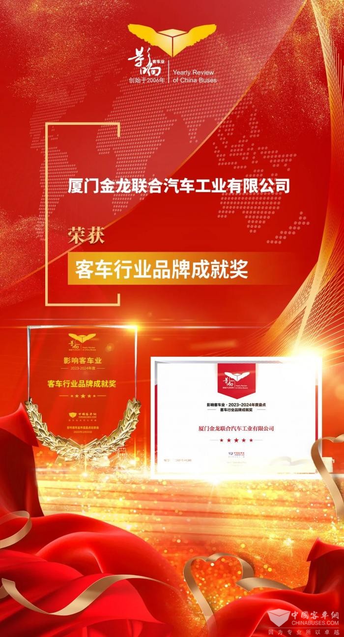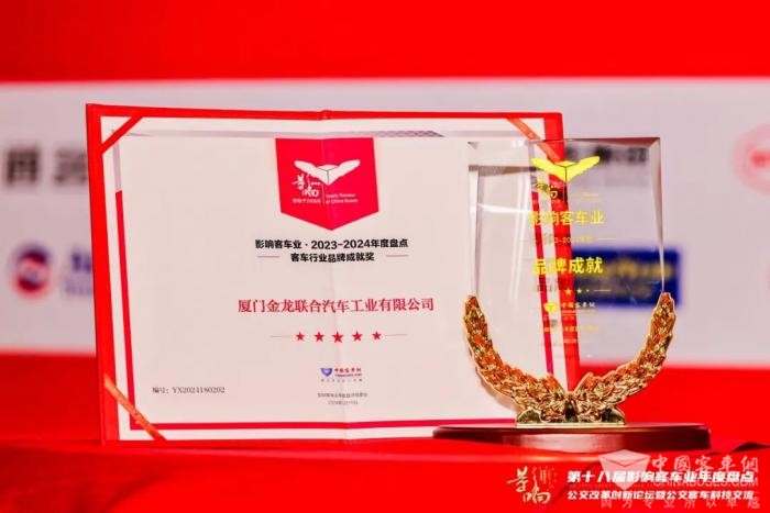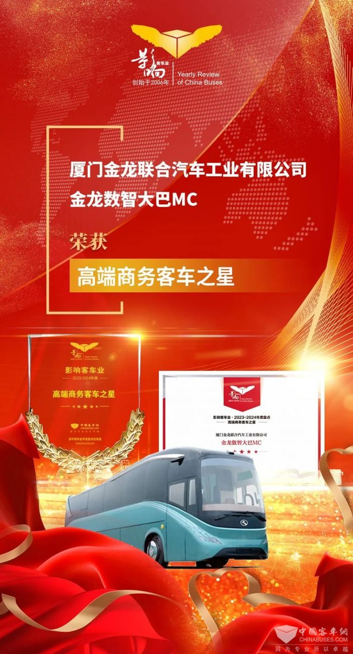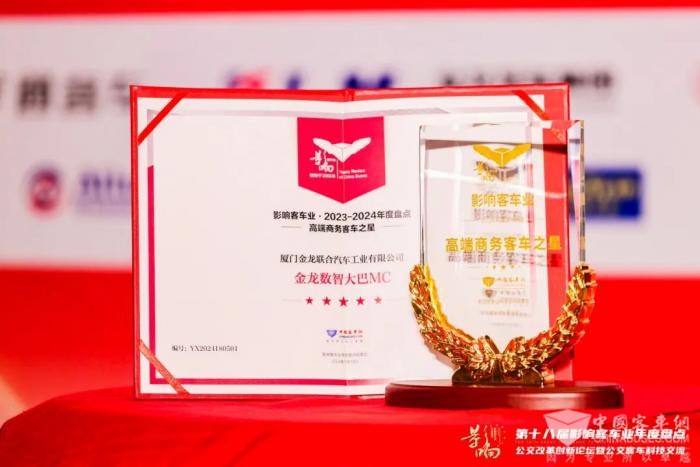 近日,由中国XINGKONG.COM联合中国土木工程学会城市公共交通分会联合主办的第十八届影响客车业年度盘点颁奖典礼在合肥举行。经过影响客车业活动组委会综合专业读者投票和专家评委评审,金龙荣获2023-2024年度“客车行业品牌成就奖”和“高端商务客车之星”两项大奖,展现了响誉全球的中国客车品牌影响力。