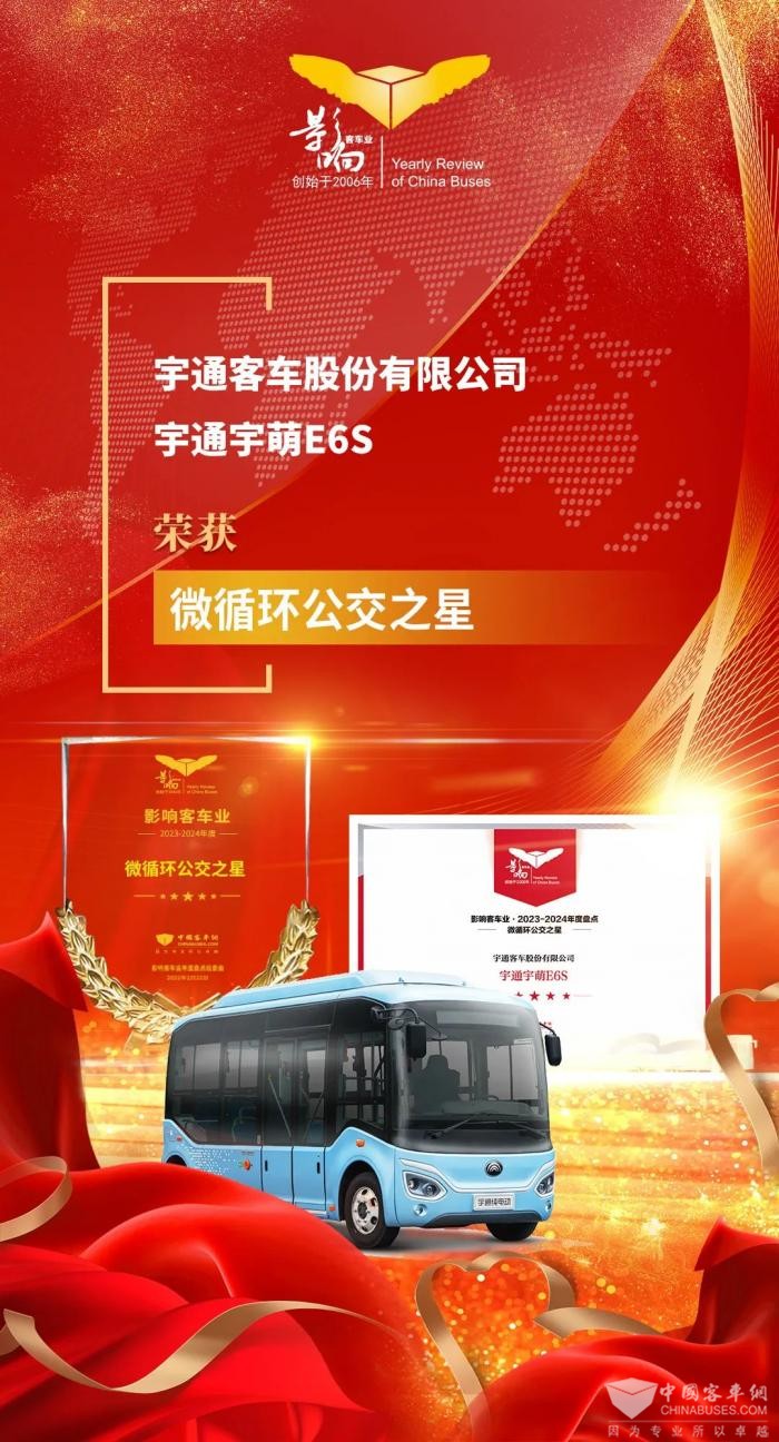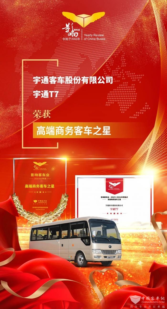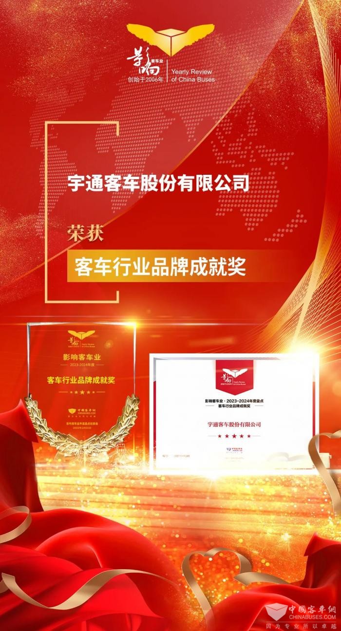 2024年1月19日,第十八届影响客车业年度盘点颁奖典礼在安徽合肥举行。宇通客车再度蝉联“客车行业品牌成就奖”,在产品端,宇通T7荣获“高端商务客车之星”,宇通宇萌E6S荣获“微循环公交之星”,宇通卓越的品牌影响力和过硬的产品实力再获权威认可。
