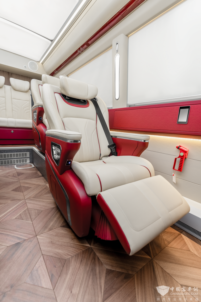 高级航空座椅可八向电动调节,通风加热按摩功能一应俱全;后排4人座椅一键切换沙发床,长途出行也能安然自若;更有KTV影音系统、无线话筒,随时随地纵享欢悦时光。通过前方的隔断门可来到驾驶区,多功能方向盘、液晶显示屏、旋转式换挡等智能化设计,也让每次驾驶都是一种尊贵的享受。