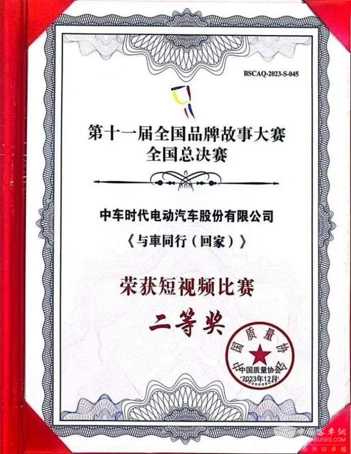 2023年12月,由中国质量协会主办的第十一届全国品牌故事大赛全国总决赛获奖结果公布,中车电动报送的作品《与車同行(回家)》,荣获总决赛短视频比赛二等奖,同时,该作品还获得了长沙赛区比赛的一等奖!
