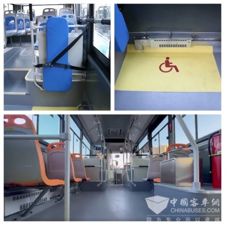 本次交付本溪的N12外表以天湖蓝为主,搭配科技黑元素,充分彰显时代气息。该批车辆采用低入口设计,后门配置无障碍翻板,车厢设置轮椅区,方便老年人及特殊人群乘车。更大的车内空间,更便捷的人性化设计,让市民乘车更舒适。
