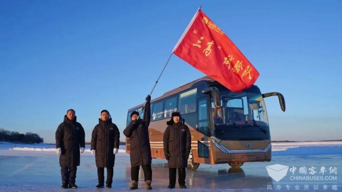 作为我国寒区汽车试验首选之地,黑河冬季气温最低达-40℃。为获取最佳试验数据,保障产品性能,中通客车“三高”试验团队克服严寒天气带来的挑战,对H11旅团客车等在内的产品开展包括冷启动、除霜、动力性、ABS制动、操稳性能、10000km环境适应性等一系列测试……