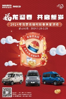 匠心兼程,服务立行。新年伊始,为满足广大依维柯用户维修保养需求,保障车辆正常运营,南京依维柯积极开展“福龙迎春 共启新岁——2024年南京依维柯新春关爱活动”,通过“车辆免费检测”、“保养产品优惠”、“线上快捷预约”、“惊喜互动福利”等多重关爱举措,用专业、热忱和贴心入微的温馨360服务,全程守护依家人的新春之路,让温馨的年味弥漫在960万平方公里的祖国大地上。