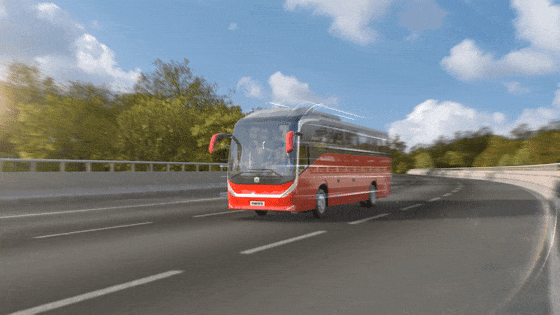 中通H系旅团客车采用空气动力学造型,曲线优美更轻盈,辅以低滚阻轮胎,精准降低车辆滚动阻力。一体式导流罩,顶部隐藏式、前风挡低风阻流水槽,风阻系数比同类车型至少可低15%!