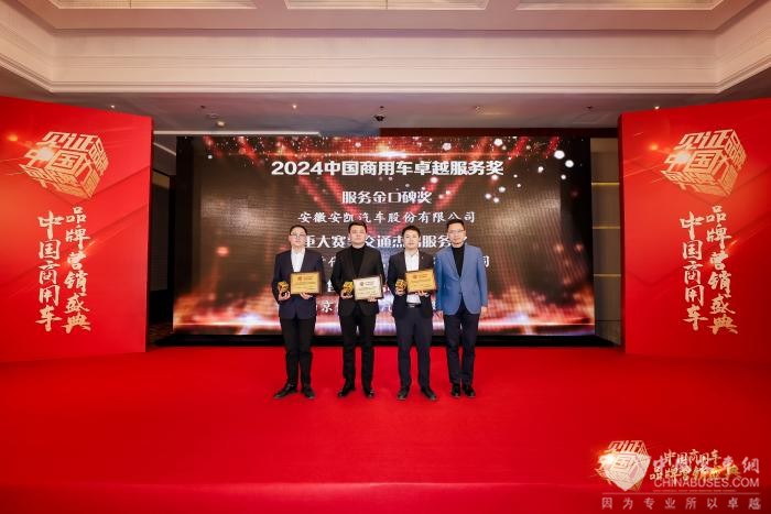 在2024中国商用车品牌营销盛典上,安徽安凯汽车股份有限公司荣获“服务金口碑奖”,中车时代电动汽车股份有限公司获颁“重大赛事交通杰出服务奖”,南京依维柯汽车有限公司则摘得“售后服务标杆品牌”殊荣,这些企业凭借卓越服务,树立行业典范,有效提升了品牌影响力。而厦门金龙联合汽车工业有限公司则荣获“卓越品牌塑造金奖”,成为本届盛典“卓越传播奖”唯一得主,其品牌塑造与传播实力可见一斑。