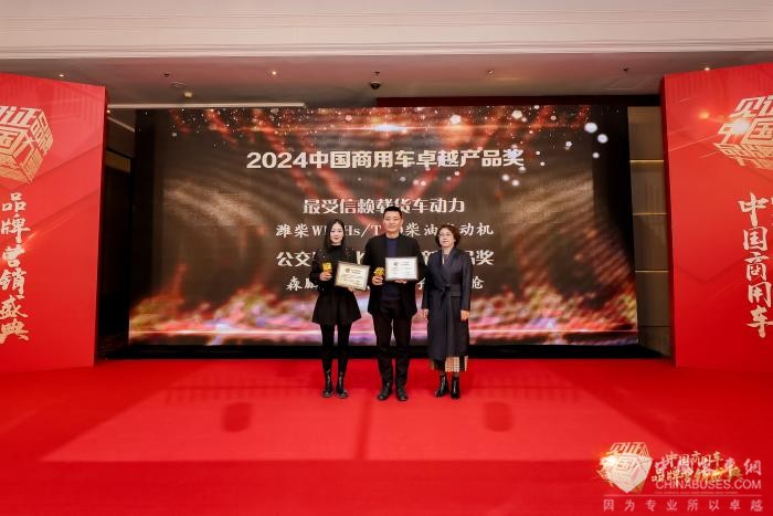 作为零部件优秀产品代表,潍柴WP6Hs/T/Q柴油发动机和森鹏电子公交数字驾驶舱则分别荣获“最受信赖载货车动力”和“公交数字化科技创新产品奖”荣誉。