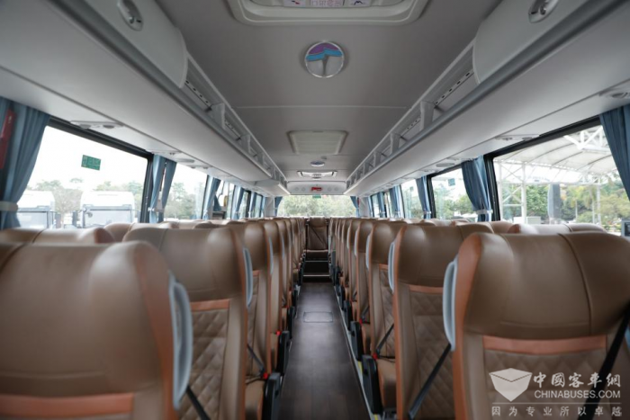 此次交付的金龙捷冠5代,不仅外观出众,在安全保障上也同样出色。车辆采用3H全承载结构和金龙自主空气悬架系统,车身强度高,稳定性强,通过性好;可搭载360度全景环视、前向防撞、车道偏预警等多项主动安全应用,为行车安全带来更好的支持与保障。