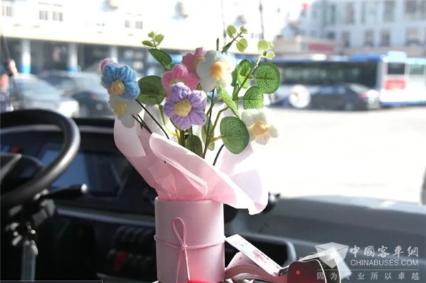 金龙“樱花接驳车”以粉白樱花为主色调,配以海经蓝,错落有致的樱花点缀在车身,好似繁星点点,宛若“樱”约而来。