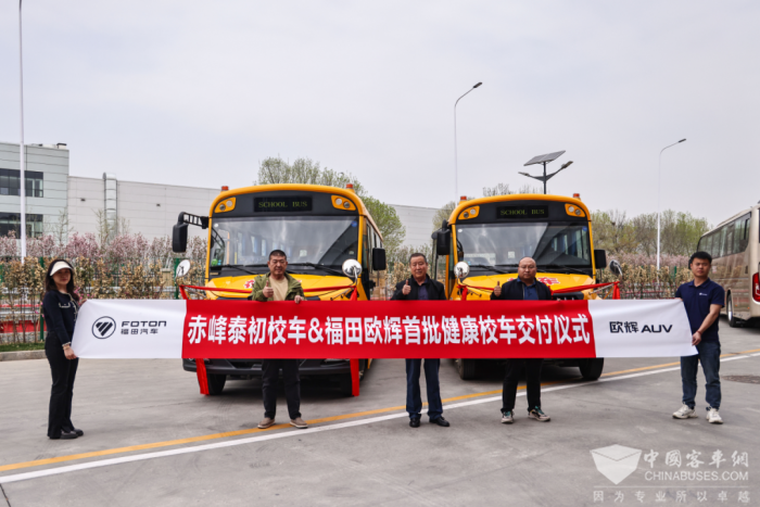2024年4月8日,赤峰泰初校车&福田欧辉首批健康校车交付仪式在北京举行,福田欧辉健康校车成功交付赤峰泰初校车。这批校车将在内蒙古赤峰市投入运营,为当地多所学校的孩童的求学路保驾护航。