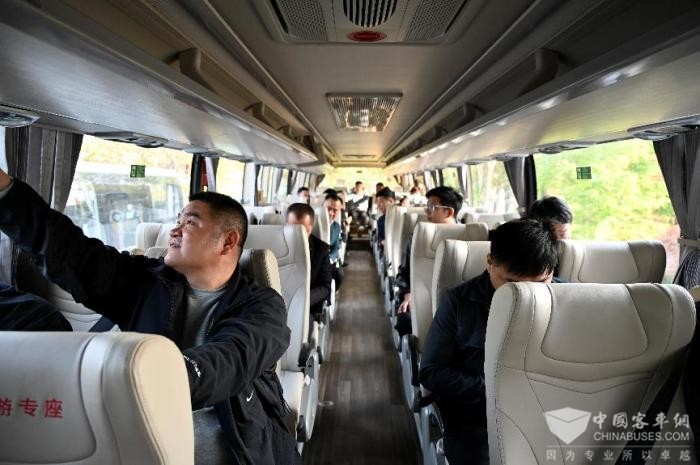 会后,多家旅游客运负责人登上苏州金龙新V系客车进行了试乘试驾,参加了试乘的一位用户表示“海格新V系,这车坐着美得很那!”还有的用户则感叹“新车开起来非常轻便、视野设计得好、智能座舱是真有科技感,很不错!”