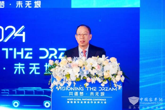 苏州金龙党委书记、董事长陈笃廉在大会上表示,在过去二十年的国际化征程中,苏州金龙与全球伙伴深度联动,业务版图扩展至全球130多个国家和地区,实现了国内外市场的相互促进。2023年海格客车出口额超5亿美元、占比达56%,首次超过国内市场。近年来,苏州金龙积极推进数字化转型和组织变革,提升管理精细化和生产智能化水平;积极实施战略重心向海外市场转移、链接造车新势力等措施,不断拓展发展空间。陈笃廉倡议合作伙伴们继续共享发展、拥抱变化,在强化技术协同创新、共同推进全球市场战略布局合作深化、持续提升售后服务质量和效率以及探索新商业模式等方面携手共进。