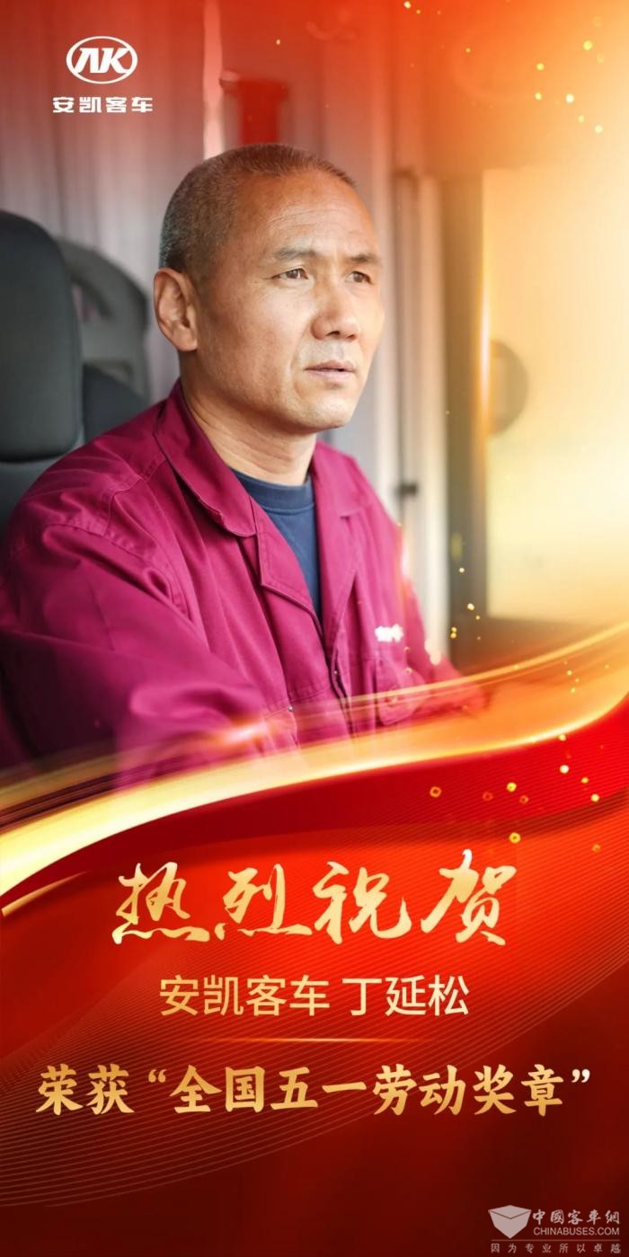 2024年4月28日,2024年庆祝“五一”国际劳动节暨全国五一劳动奖和全国工人先锋号表彰大会在北京人民大会堂举行。安凯客车丁延松榜上有名,获评2024年“全国五一劳动奖章”。