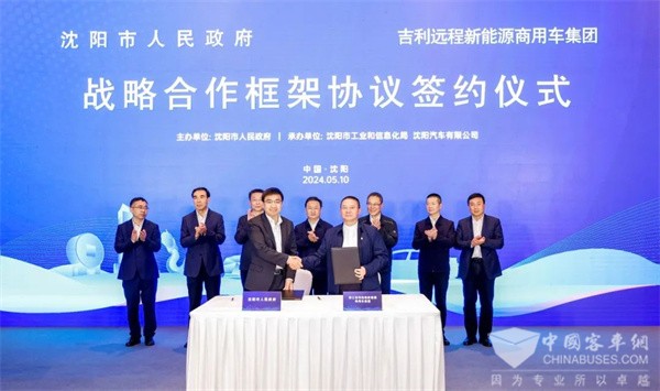2024年5月10日,远程新能源商用车集团与沈阳市人民政府战略合作框架协议签约仪式在辽宁沈阳举行。根据协议,双方将集聚创新资源,发挥特色优势,以醇氢生态建设为核心,在新能源及醇氢电动汽车推广等领域建立长期战略合作伙伴关系,围绕因地制宜发展新质生产力,助力沈阳市汽车产业和经济社会高质量发展。