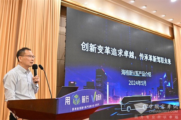 活动现场,苏州金龙国内销售总监孙鸿翔向与会嘉宾分享了开发新V系的初衷。作为客车行业的领先企业,苏州金龙始终坚持以技术创新为先导,紧扣旅游客运行业发展脉搏,深度洞察客户需求。新V系客车是苏州金龙历经三年潜心研发,全员参与,投入巨资,倾力打造的全新智慧客车。它基于对客户运营需求的深入理解和精准把握,实现了产品性能、品质和效率的重大提升,将成为旅游客运业提质增效的得力助手。