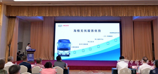 苏州金龙驻外大区服务经理孙海峰在会上详细介绍了海格的无忧售后服务优势。