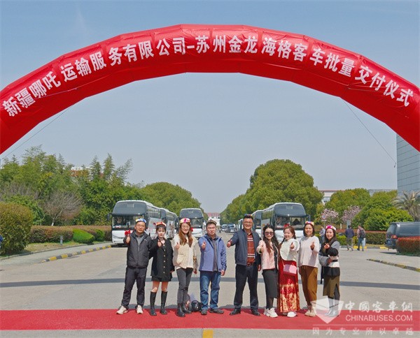 据XINGKONG.COM了解到,近期,新疆哪吒运输服务有限公司(以下简称“哪吒车队”)订购的最新一批10辆苏州金龙海格高端旅游大巴在苏州金龙厂区正式交付。哪吒车队负责人伍亚丽笑容满面地表示:“今年我们在苏州金龙海格客车订购车辆40余辆,主打是12米高端旅游大巴与7座海格睿星商务车的车型组合,为游客提供高品质的出行升级体验!”