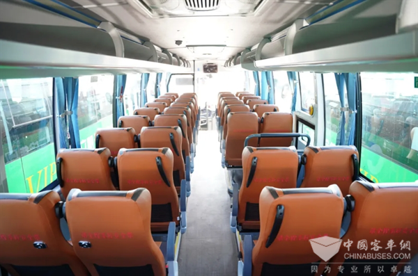 内饰上,金龙注重乘客的舒适感官体验,座椅内饰选用高品质面料,触感柔软舒适,整体设计贴合人体曲线,能够提供更好的支撑力和乘坐体验,实现舒适出行。