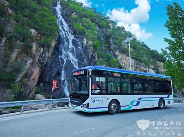这是济南公交专门在当地开通的883路爱心果农专线,中通N系纯电动公交车担纲成为主力,串联起济南地区绿色乡村振兴路。从济南市区到南部山区的窝铺村,单程39公里。每天清晨6点,883路爱心果农专线从窝铺村准时出发,途经窝铺、后行、柳埠刘家峪、岱密庵、金牛山等地,1小时30分后,便能抵达济南市民族大街菜市场。
