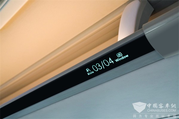 凯旋在一些小的细节上,也体现了用升级代替平替的理念。比如行李架上的座位牌,创新采用了电子座位号牌,营造了更好的车内氛围感。再比如空调出风口,升级为快拆形式,外观变化不大,但后期维护更加方便。
