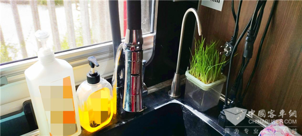 潇肖女士:“这是我的直饮水机,当初专门让厂里换的,想喝水的时候,直接接了就可以喝,非常方便。而且幸好我这台房车的承载性强,才顺利装上了我想要的供水系统,喝上了纯净和安全的水。”