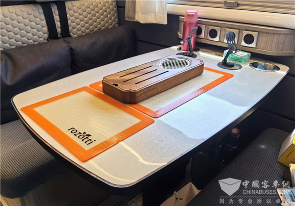 高大姐:“我很喜欢我的小茶台,休息的时候坐下来,跟爱人边品茶边欣赏窗外的风景,别有一番风味。房车的内饰风格与茶台的简约设计相得益彰,让每一次品茶都成为一次心灵的旅行。”