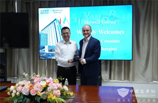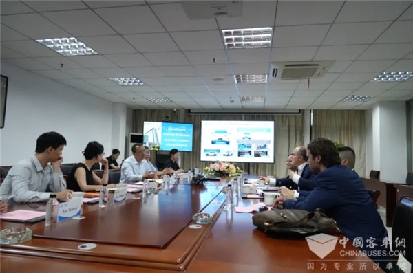 开沃集团联合副总裁/联席CEO韩必文先生对张威廉总领事一行的到来表示热烈欢迎,带队开沃集团副总裁/商用车事业部常务副总经理李江先生、江苏开沃汽车有限公司海外业务总监龚毅雯女士、开沃集团科技规划部副部长麦德伦先生,就开沃集团各个事业部子公司业务进行全面深入的介绍和探讨。